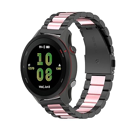 SMYAOSI Armband für Garmin Forerunner 745, 22mm Metall Edelstahl für Huawei Watch GT3, Huawei Watch GT, GT3 Pro, GT2e, GT2 Pro, Galaxy Watch 46mm/Galaxy Watch 3 45mm/Frontier (Schwarz Rosa Schwarz)