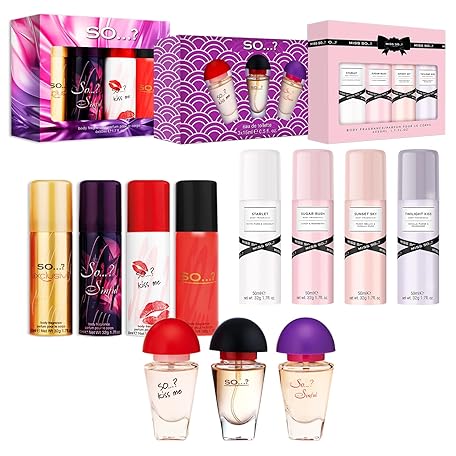 Thông tin sản phẩm So…? Women's Mixed Gift Sets Bundle, Body Mist Fragrance Spray & EDT Perfume (4 x 50 ml Body Mist, 3 x 15 ml EDT) Pack of 3