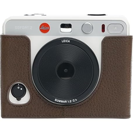 SOFORT 2 Camera Case Handmade Genuine Leather Half Camera Bag for Leica SOFORT 2 Camera Bottom Opening Hand Strap, coffee, Case