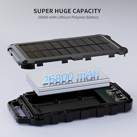 Thông tin sản phẩm Solar Power Bank 26800 mAh, Portable Solar Charger PD15W USB-C External Battery Outdoor Waterproof Power Bank Solar Panel with LED Light and 3 Outputs Charger for Smartphones Tablets and More