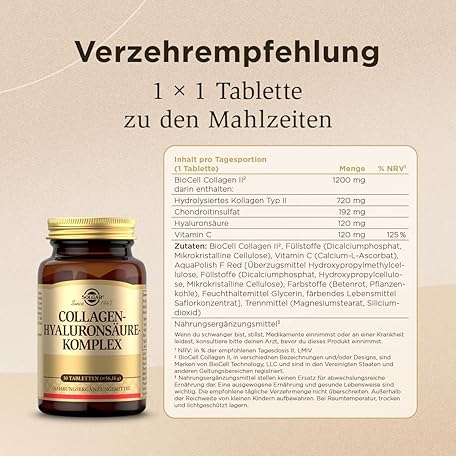 Sản phẩm SOLGAR® Collagen Hyaluronic Acid Complex | With Patented BioCell Collagen II® and Vitamin C | 30 Tablets for a Month đang được bán với giá ưu đãi là $61.8466 tại nước Đức.