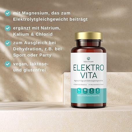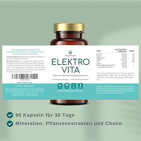 Sản phẩm SOLVISAN ELEKTRO VITA - High Dose Electrolytes for Your Electrolyte Balance & Muscle Function - with Sodium, Potassium, Magnesium, Chloride and Choline for the Liver* - 90 Capsules đang được bán với giá ưu đãi là $16.0448 tại nước Đức.