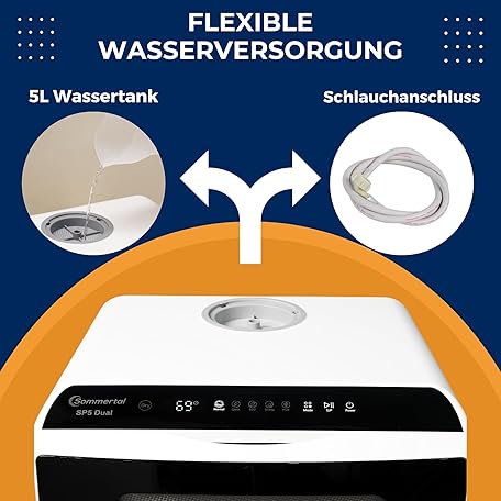 Thông tin sản phẩm Sommertal SP5 Dual Mini Dishwasher - Camping Dishwasher or Table Dishwasher up to 4 Place Settings, 5L Tank, 6 Programmes, 360° Cleaning Cover, Flexible Water Supply