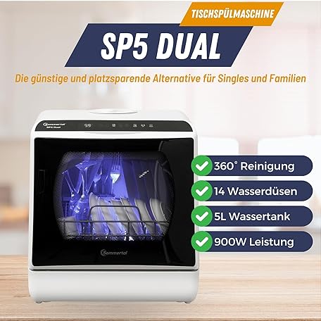 Sản phẩm Sommertal SP5 Dual Mini Dishwasher - Camping Dishwasher or Table Dishwasher up to 4 Place Settings, 5L Tank, 6 Programmes, 360° Cleaning Cover, Flexible Water Supply đang được bán với giá ưu đãi là $318.7705 tại nước Đức.