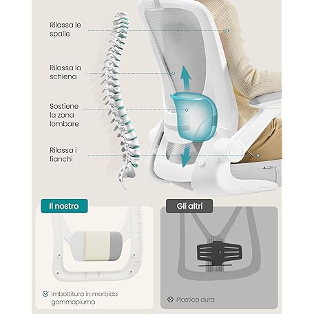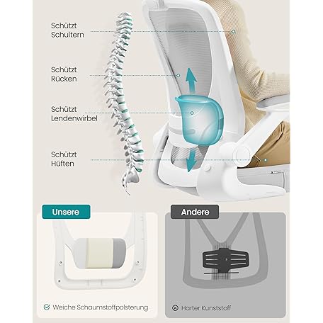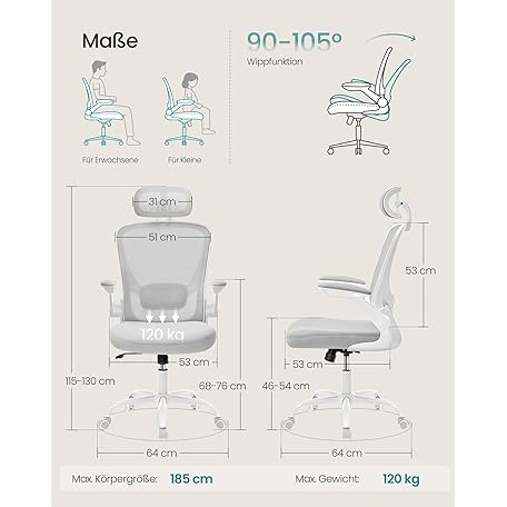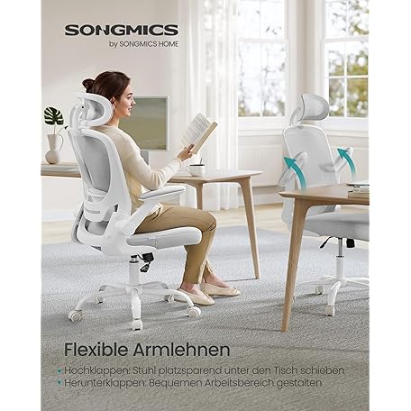Sản phẩm SONGMICS Office Chair Ergonomic Swivel Chair with Mesh Lumbar and Headrest Rocker Function 53cm Seat Folding Armrests Work Bedroom Students Dove Grey OBN047G01 đang được bán với giá ưu đãi là $123.4752 tại nước Đức.
