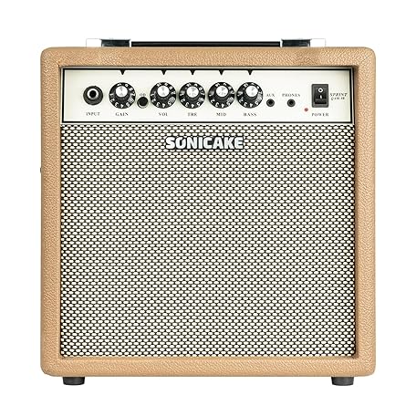 SONICAKE 15W Elektrischer Gitarrenverstärker Dual-Kanal mit Kopfhörerausgang 3-Band EQ AUX-Eingang Kompaktes Tragbares Design für Übung Sprint