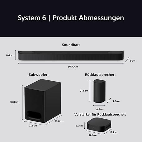 Thông tin sản phẩm Sony BRAVIA Theatre System 6 (5.1 Channel Surround Sound, 1000 W, Includes Rear Speaker & Subwoofer, Dolby Atmos, DTS:X, AI Voice Zoom 3 with BRAVIA TV, DSEE, Multi-Stereo Party Mode) Black