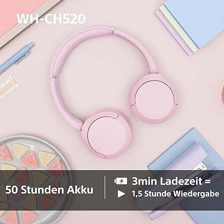 Thông tin sản phẩm Sony WH-CH520 Wireless Bluetooth On-Ear Headphones, High Sound Quality, Lightweight Design, Up to 50 Hours Battery Life, Fast Charge, EQ, Clear Talk Quality, iOS & Android - Beige