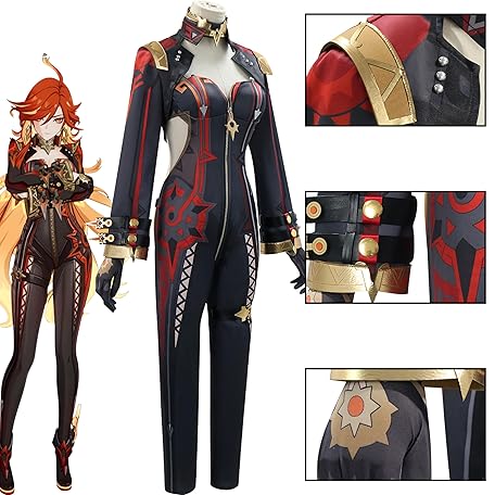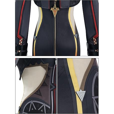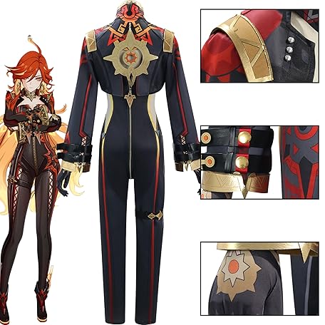 Thông tin sản phẩm SOOYOOYOO Genshin Impact Cosplay Mavuika Costume, Black Battle Suit with Red Accents, Zip Jumpsuit, Ideal for Carnival and Anime Fans (Female, XS-3XL)