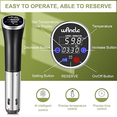 Thông tin sản phẩm Sous Vide, Wancle Sous Vide Garer Stick 1100 W IPX7 Waterproof Precision Cooking Pot Immersion Circulator with Reservation Function, Easy to Store