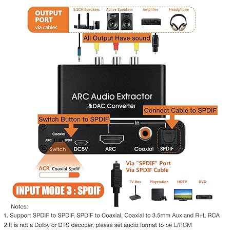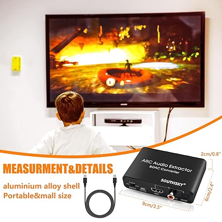 Thông tin sản phẩm SOUTHSKY 192 kHz DAC Converter, Digital to Analogue L/R RCA Adapter, HDMI ARC Audio Extractor to SPDIF, Coaxial, 3.5 mm, L/R, CEC Volume Adjustable