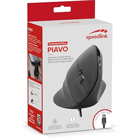Sản phẩm Speedlink PIAVO Ergonomic Vertical Mouse - Ergonomic Vertical Mouse Wired, Adjustable up to 2400 dpi, Rubberised Surface, Vertical Mouse with Cable USB-A, 5 Buttons, Black đang được bán với giá ưu đãi là $16.6225 tại nước Đức.