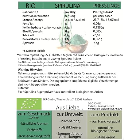 Sản phẩm SPINTZ® Pack of 2000 Organic Spirulina Pellets 100% Controlled Organic Cultivation Vegan Spirulina Tablets 250 mg/Tab Plastic-Free and Sustainably Packed Spirulina Tablets đang được bán với giá ưu đãi là $28.0239 tại nước Đức.