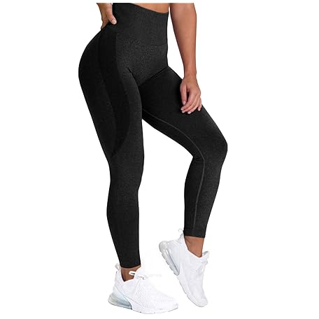 Squat Proof Gym Leggings Damen Hohe Taille Nahtlose Butt Lifting Workout Leggings Laufen und Yoga Hose, jet black, S