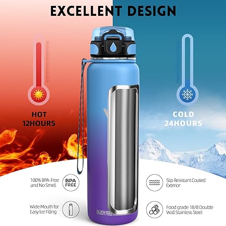 Thông tin sản phẩm Stainless Steel Water Bottle, 1 Litre BPA-Free, Thermos Flask, Leak-Proof, Double-Walled Insulation, Insulated Flask, Water Bottle, 18/8 Stainless Steel, Thermos Flask for Hiking, Running, School