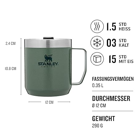 Thông tin sản phẩm Stanley Classic Legendary Camp Mug Thermal Mug, Keeps Hot for 1+ Hours, Cold for 2+ Hours, BPA-Free, Dishwasher Safe, Stainless Steel Coffee Mug To Go