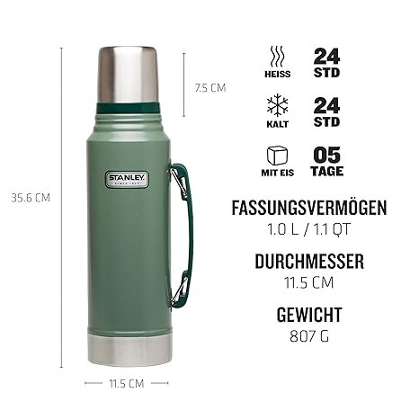 Thương hiệu STANLEY là cái tên nổi tiếng được rất nhiều khách hàng trên thế giới chọn lựa. Với kiểu dáng đẹp mắt, sang trọng, sản phẩm STANLEY Classic Legendary thermalskanne 1L - Hält 24 Stunden Heiß Oder Kalt - Spülmaschinenfest - Auslaufsicherer Deckel Dient Als Becher - Isolierflasche BPA Frei - Edelstahl thermalsflasche là sự lựa chọn hoàn hảo nếu bạn đang tìm mua một món cho riêng mình.