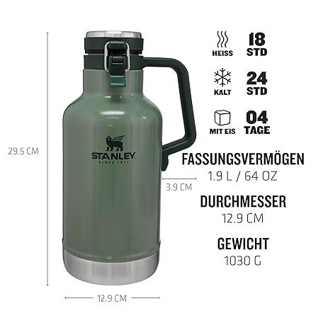 Sản phẩm Stanley Unisex - Adult Classic Easy-Pour Thermal Insulated Stainless Steel Growler, Hammertone Green, 1900ml đang được bán với giá ưu đãi là $83.0144 tại nước Đức.