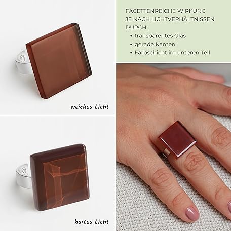 • Statement Ring mit braunem Stein (20mm) • Geburtsstein Schmuck Geometrisch • Edelstahlring größenverstellbar (min. Ø 19mm) • handgemacht & nachhaltig