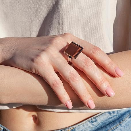 Thông tin sản phẩm Statement Ring mit braunem Stein (20mm) • Geburtsstein Schmuck Geometrisch • Edelstahlring größenverstellbar (min. Ø 19mm) • handgemacht & nachhaltig