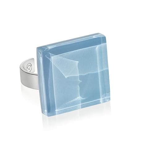 Statement Ring mit Stein hellblau (20mm) • Geburtsstein Schmuck Geometrisch • Edelstahlring größenverstellbar (min. Ø 19mm) • handgemacht & nachhaltig