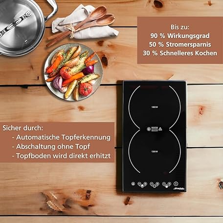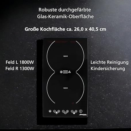 Thông tin sản phẩm Steba Double Induction Hob, Robust Coloured Glass-Ceramic Surface, Built-In, 8 Power Levels, Timer Function (5-99 Minutes), Child Lock, 3100 Watt, IK 200
