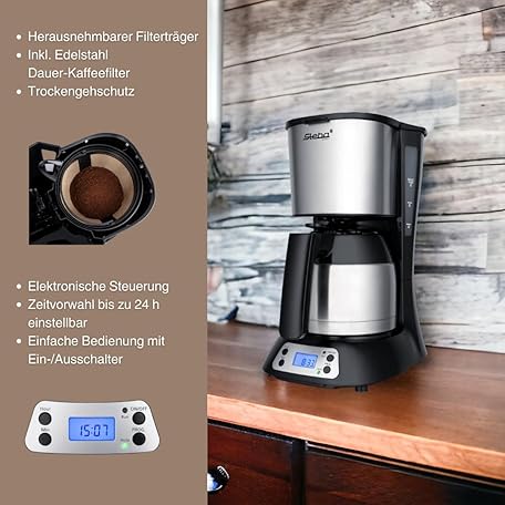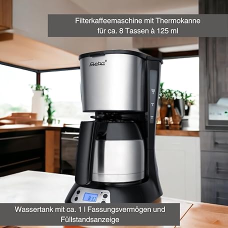 Steba KM F3 Thermo Filter Coffee Machine with Thermal Jug for 8 Cups of 125 ml, Water Tank with Approx. 1 Litre, Integrated Drip Stop, Electronic Control, 900 Watt, KM F3 Thermo