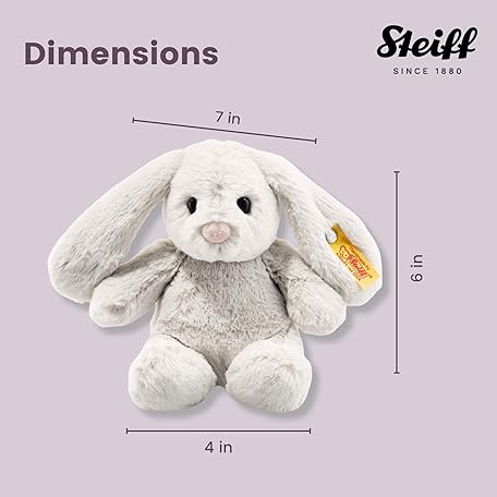 Thông tin sản phẩm Steiff Hoppie Rabbit, 18 cm Plush Bunny with Floppy Ears, Cuddly Toy for Children, Soft Cuddly Friends, Movable and Washable, Light Grey (080463)