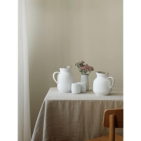 Stelton Amphora Insulated Jug - Coffee Pot, Thermos Flask - 1 Litre Plastic Jug with Thermal Glass Insert - Accessories for Household, Kitchen, Dining Room - Matte Finish, Soft White