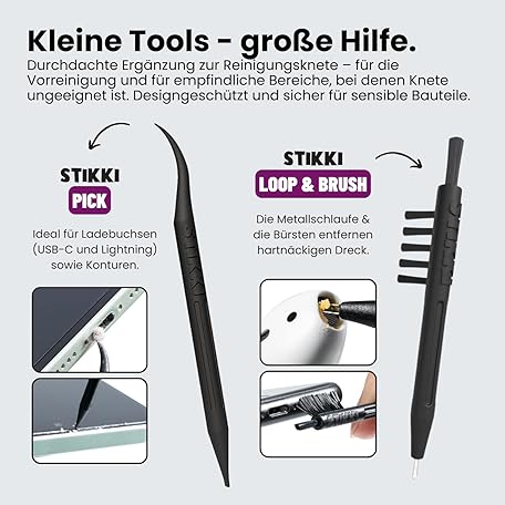 Thông tin sản phẩm Stikki Cleaning Clay for Mobile Phone, Smartphone, Headphones and Much More, Professional Cleaning Set Incl. Multipurpose Brushes