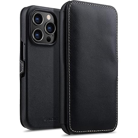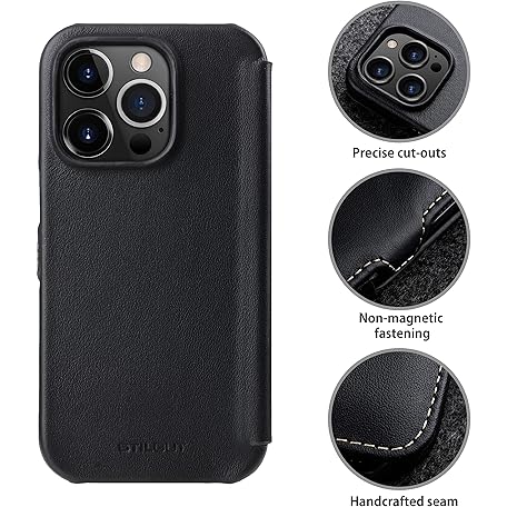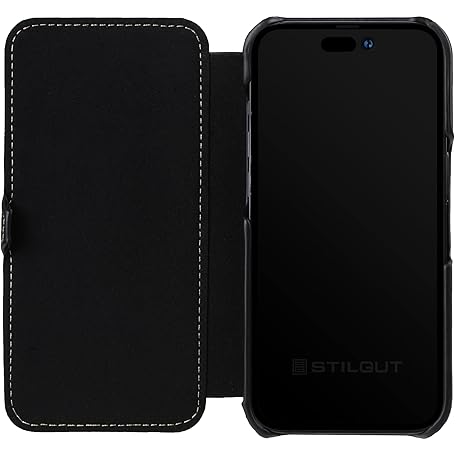 STILGUT Book Case Compatible with iPhone 14 Pro (6.1 Inch) Leather Case with Clip Closure, Flip Case, Mobile Phone Case, Leather Case - Black Nappa