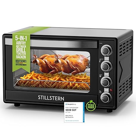 Thương hiệu Stillstern là cái tên nổi tiếng được rất nhiều khách hàng trên thế giới chọn lựa. Với kiểu dáng đẹp mắt, sang trọng, sản phẩm Stillstern CYCLONE PRO+ Mini Oven with Convection 60 L (German Version) Pizza Diameter 40, Non-Stick Coating, Defrosting, 2-Hour Timer, Camping Mini Oven Convection Pizza Oven, Mini Oven, Small là sự lựa chọn hoàn hảo nếu bạn đang tìm mua một món cho riêng mình.