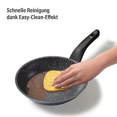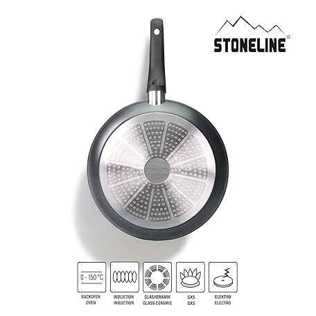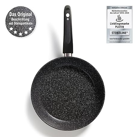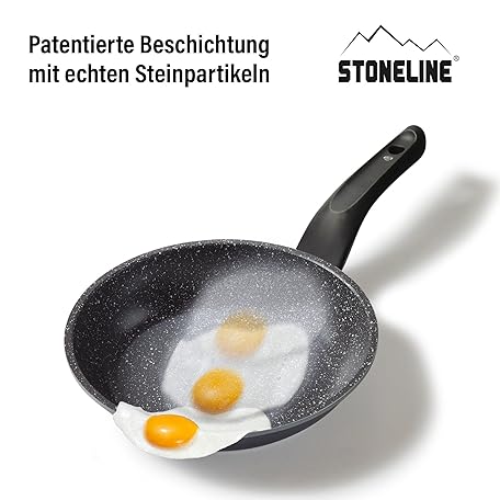 STONELINE Frying Pan 28 cm with Magnetic Handle, Non-Stick Coated Pan with Real Stone Particles, All Hobs Including Induction, Grease or Oil Free Frying