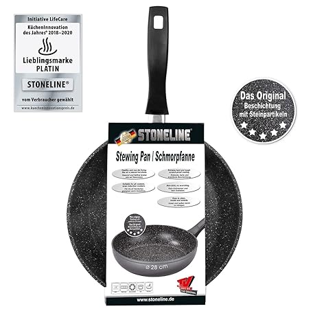 Sản phẩm STONELINE Sauté Pan 28 cm High Rim Die-Cast Aluminium Sauté Pan Coated with Real Stone Particles Suitable for Oven and Induction Cookers Frying Without Grease and Oil Grey đang được bán với giá ưu đãi là $60.6585 tại nước Đức.