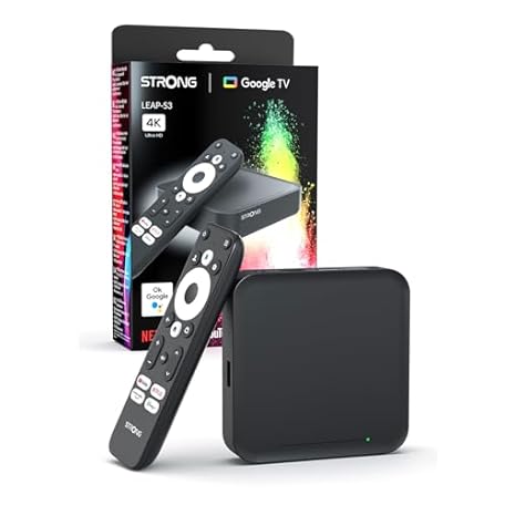 Sản phẩm STRONG Leap-S3 4K UHD Google TV Streaming Box with Ethernet Port, 2GB RAM + 16GB Memory, Integrated Chromecast, WiFi, Google Voice Control, HDR10+, Dolby Atmos & Dolby Vision đang được bán với giá ưu đãi là $50.3798 tại nước Đức.
