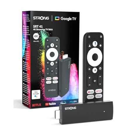 Sản phẩm STRONG SRT41 4K UHD Google TV Stick, Android 11, WiFi, Integrated Chromecast, Google Voice Assistant, HDR10+, Dolby Audio & Dolby Vision, Netflix, Prime Video, YouTube, Disney+ đang được bán với giá ưu đãi là $50.1945 tại nước Đức.
