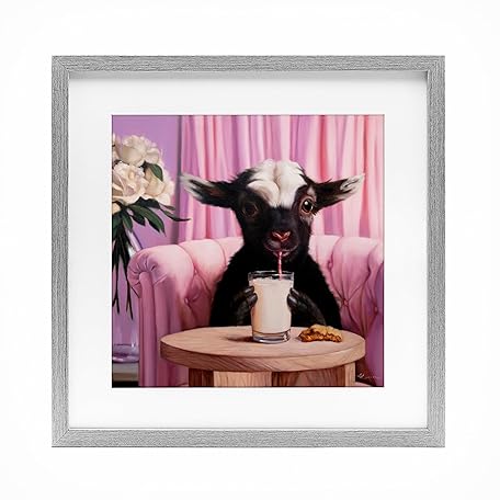 Stupell Industries Lucia Heffernan, gerahmter Druck unter Glas, Motiv Baby Goat Sipping Milk Grey, 40,6 x 40,6 cm