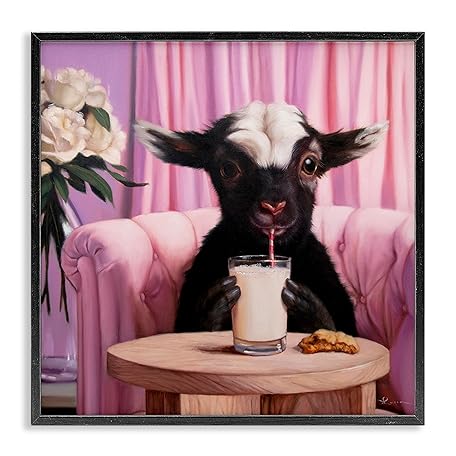 Stupell Industries Lucia Heffernan Giclée-Kunst, Motiv "Baby Goat Sipping Milk Sipping Milk Black", gerahmt, 61 x 61 cm