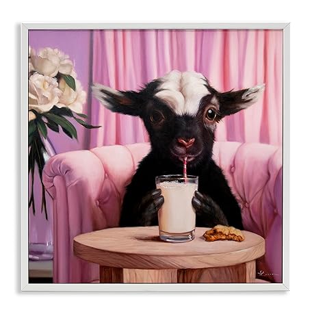 Stupell Industries Lucia Heffernan Giclée-Kunst, Motiv Baby Goat Sipping Milk Weiß, gerahmt, 30,5 x 30,5 cm