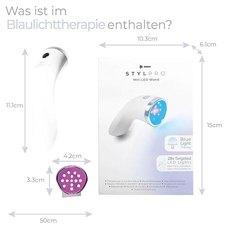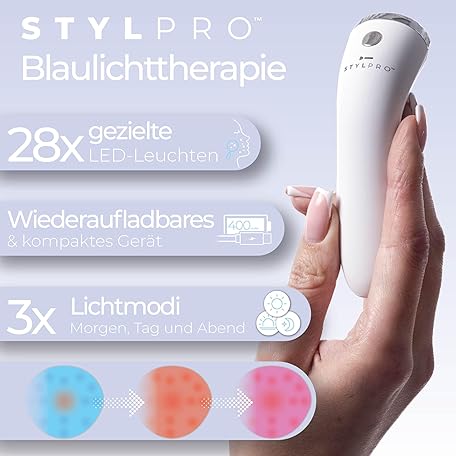 Sản phẩm STYLPRO Mini LED Wand - Blue Light Therapy for Acne and Skin, Helps with Blemishes, Pimples, Inflammation, Redness, 3x Modes, 28 x High Power LEDs, Blue, Red, NIR. Rechargeable đang được bán với giá ưu đãi là $47.3387 tại nước Đức.