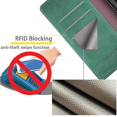 SUANPOT RFID Protection for Samsung Galaxy A23 5G/4G Case PU Leather Mobile Phone Case Leather Flip Case Card Slot Flip Cover for Samsung A23 Mobile Phone Case Leather Wallet Phone Case Light Green