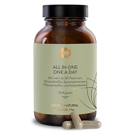 Sản phẩm SUNDAY NATURAL Multivitamin Complex - All in One - Premium All-Round Supply with Only 1 Capsule: 30 A-Z Vitamins, Micronutrients - 90 Vegan Vitamin Capsules - Laboratory Tested and Without Unnecessary Additives đang được bán với giá ưu đãi là $25.3643 tại nước Đức.