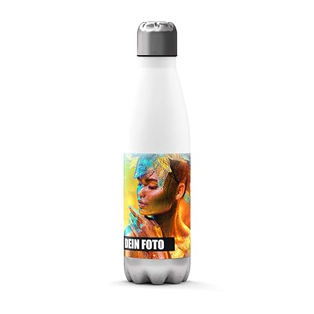 Sunnywall Premium Edelstahl-Thermosflasche mit Foto + Text kalt & heiß Thermoskanne Isolierflasche Trinkflasche WasserflascheCampingflasche Isolier-Trinkflasche Auslaufsicher (500ml, Weiss/Silber)