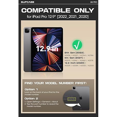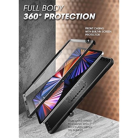 SUPCASE Case for iPad Pro 12.9 Inch 2022 / 2021 / 2020 (6th/5th/4th) Bumper Case 360 Degree Protective Case Support Apple Pencil Charging [Unicorn Beetle PRO] with Screen Protector and Stand (Black)