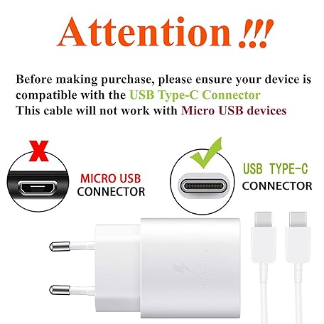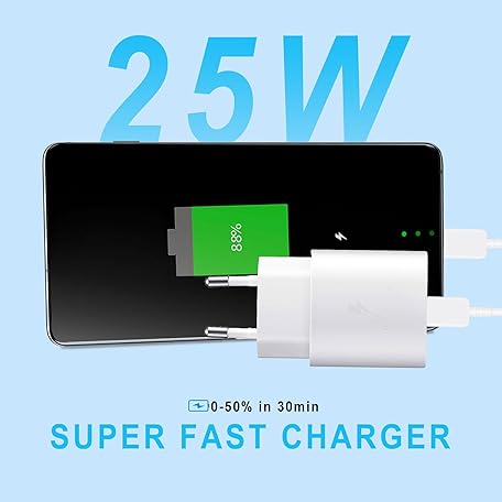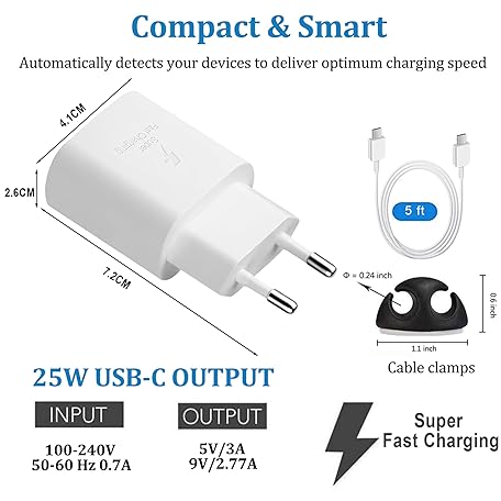 Super Fast Charger Type C, 25W USB-C Wall Charging Block with 5ft Android Phone Charging Cable for Samsung Galaxy S25/S24/S23/S22/S21 Plus/Ultra/S20 FE/S10 Plus/A55/A54/A53/A71/Note 20/Z Fold 6