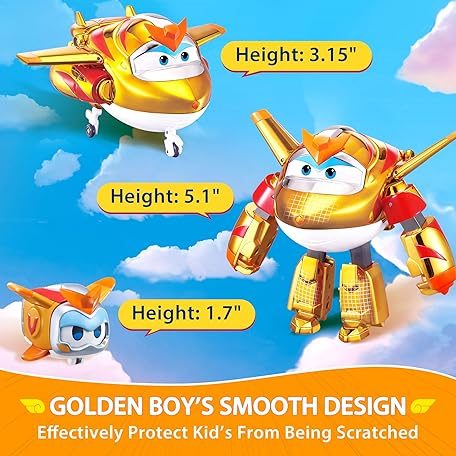 Thông tin sản phẩm Super Wings EU770441 - Transforming Golden Boy & Pet 12 cm Transforming Toy Figure with Approx. 4.3 cm Pet, for Ages 3 and up, Gold