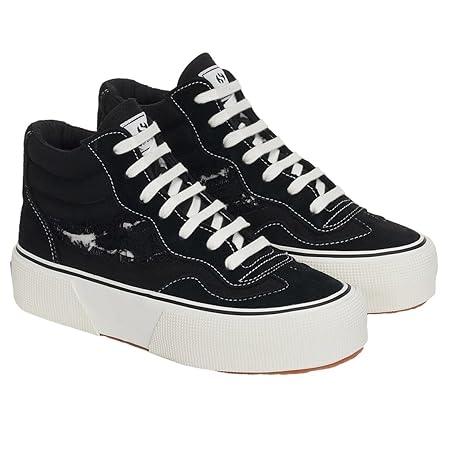 Superga 3141 Revolley Mid Ripped Swallow Tail Sneaker für Erwachsene, unisex, Schwarz/Weiß Avorio, 7.5 Women/7.5 Men