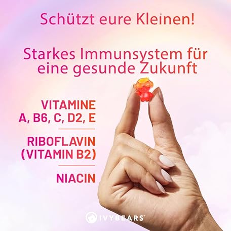Thông tin sản phẩm Superpower Children's Immune System Strengthening Vitamin A, B6, C, D & E Multivitamin Gummy Bears for Children 100% Natural Berry Flavour Made in Germany Daily Supply 60 Pieces IVYBEARS®