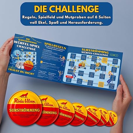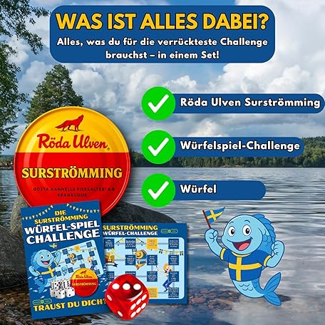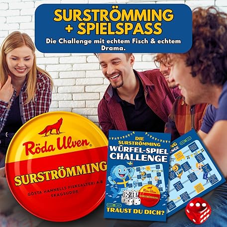 Sản phẩm Surströmming Original Including 1x Dice Game and 1x Dice - Challenge - Swedish Stinkfish + Sürstrüming Fish Courage Test from Sweden - Cult Stinkfish 400/300g đang được bán với giá ưu đãi là $19.1404 tại nước Đức.