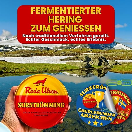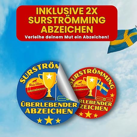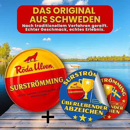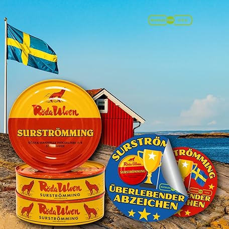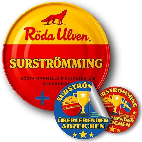 Sản phẩm Surströmming Original with 2x "Survivor Badges" - Swedish Stinkfish in a Tin - Sürstrüming Fish 400g/300g đang được bán với giá ưu đãi là $18.6172 tại nước Đức.
